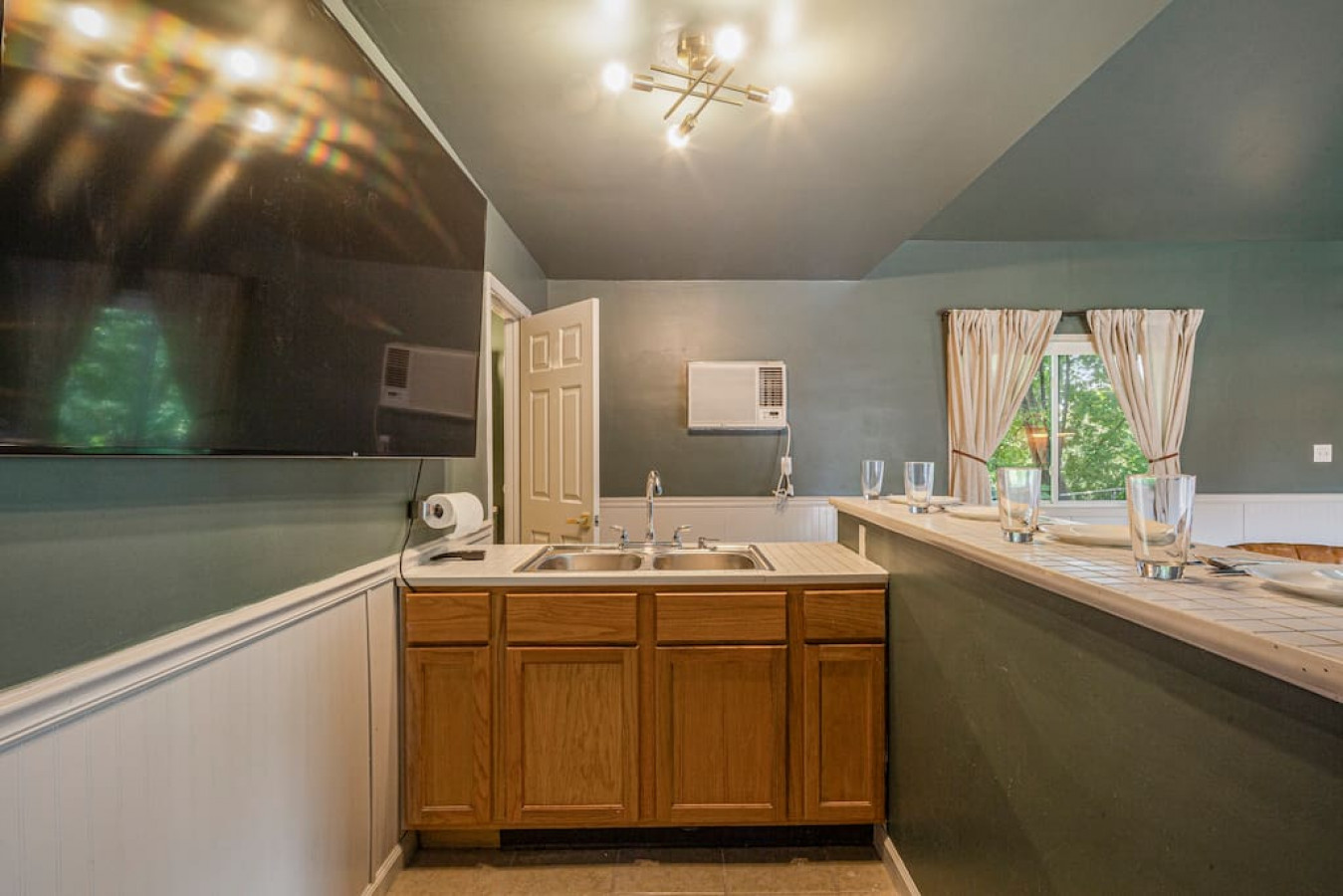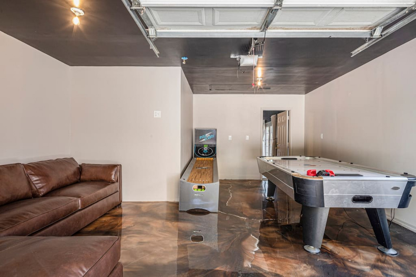 August 2025 4.00All in all, we enjoyed our stay. Pros: Tyler was very responsive and quick to address a couple concerns upon check in. We had a great time using the pool and the house was a short ride to downtown. Tons of sleeping space and all were comfortable. Note some beds are located in detached pool house. Main house A/C kept the upstairs super cool. Access to lots of content on the TV. Cons: We were put off by the neighbor being openly against the house being an Airbnb (signs posted at the driveway stating their disapproval). Tyler informed us upon check in that the neighbors could be a pain and that we needed to strictly follow the parking and noise rules or risk being responsible for fines by the city. We felt the quality of the house didn’t match the cost. Moldy bathroom, broken couch, extremely cheap linens, poorly installed astroturf everywhere. Grill half working and bottom caught fire because it clearly hasn’t been cleaned in a long time. Pool house A/C filter was completely clogged.