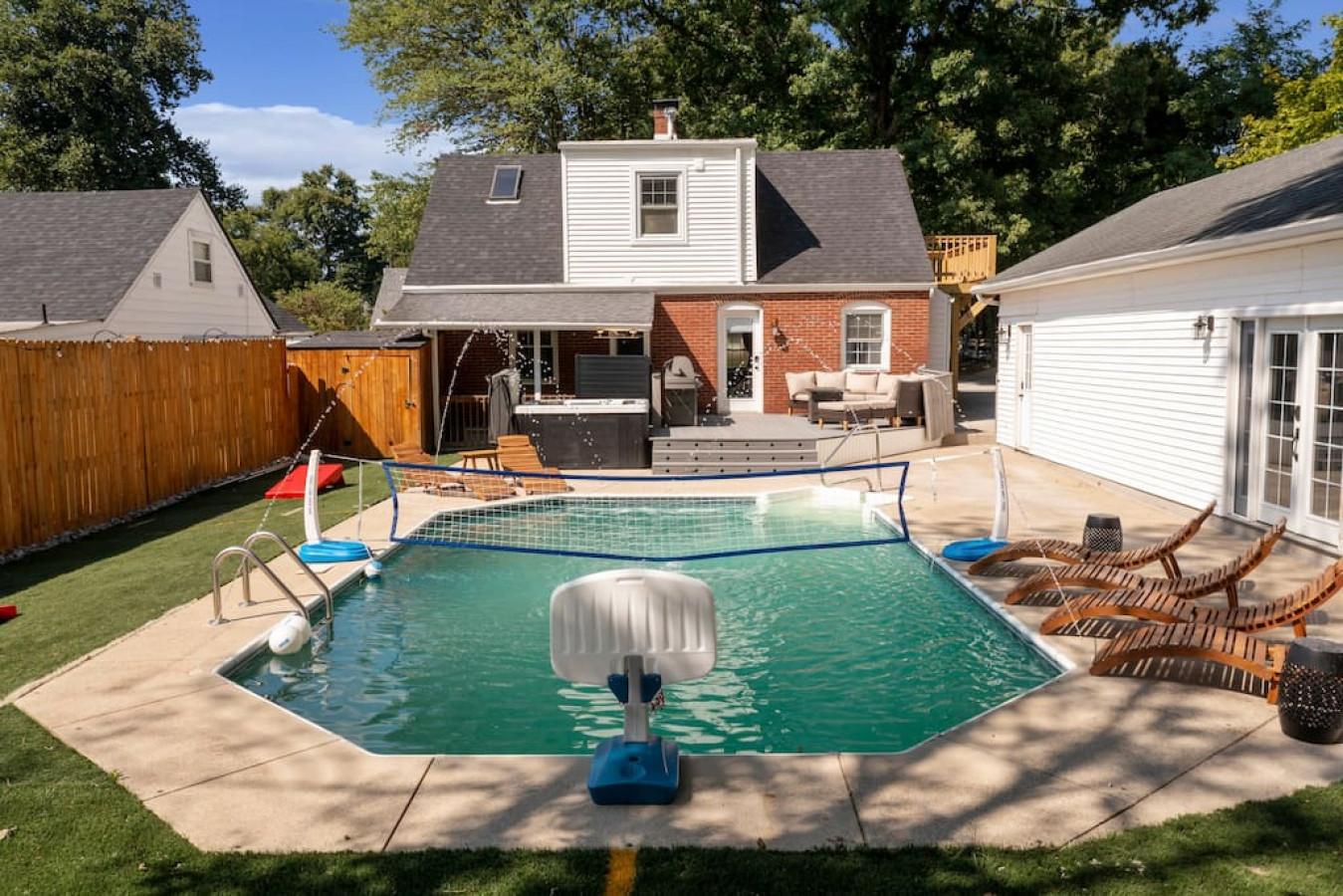 / night🚨3/4/25 POOL IS STILL OPEN Takes 2-3 days to get to heat so week notice is required🚨 ➤Your perfect stay awaits at our spacious pad that sleeps 14: 1 King, 8 Queens, and 3 baths ➤Dive into Relaxation: Unwind in the heated inground pool or slide into the 6 person hot tub. An outdoor shower offers a refreshing touch after a dip. ➤Endless Entertainment: Let the good times roll in the game room, equipped for hours of fun. Yard games and outdoor entertainment. Channel your inner master chef on the 8 burner Weber grill. ➤Conveniently located for easy access to distilleries. *There is a refundable $500 damage security deposit that is charged to card on file 5 days before checkout and return the second day after checkout. **cleanliness of pool from Oct-April is not part of our 5 star guarantee and should be refrained from reviews/refunds although our team will do their best to keep it in acceptable condition for the season. Only value of heat fee will be refunded if the heater becomes non functional. Pool heat is $75/day gas charge. Quiet time: Prohibits any outside noise that is audible at the property line of the Premises occurring between 10:00 p.m. and 7:00 a.m. on weeknights (Sunday, Monday, Tuesday, Wednesday, and Thursday), and between 11:00 p.m. and 7:00 a.m. on weekend nights (Friday and Saturday); Local Rental Ordinance 1. When provided on-site, off-Street parking shall occur on paved portions of the Premises and not in the Yard. 2. Rental of the Dwelling shall be done in a manner that is consistent with the intent of a Single Family residential neighborhood. 3. The Owner shall provide the Occupant with the following information prior to occupancy and post such information in a conspicuous location within the Dwelling: a. The name of the contact Person and a telephone number at which the contact Person may be reached any time the Dwelling is Rented; b. Notification of the Maximum Occupancy permitted in the Dwelling per the fire code; c. Notification and instructions as to the parking locations; d. A copy of this Article, as may be amended from time to time; and e. Notification that an Occupant may be cited or fined by the City, in addition to any other remedies available at law, for violating any provisions of this Article. 4. The Owner’s contact Person must be available to accept telephone calls at all times the Dwelling is Rented. The contact Person must have a key to the Dwelling and be capable of being physically present at the Dwelling within three (3) hours to address issues, unless arrangements are made for another Person to address issues within the same timeframe. 5. The appearance of the Dwelling shall not conflict with the residential character of the neighborhood. The Dwelling shall be properly maintained per all applicable local and state codes and kept in good repair so the Use in no way detracts from the general appearance of the neighborhood. 6. Occupants shall not encroach on neighboring properties. 7. The Premises shall be maintained free of debris and unwholesome substances. Garbage must be kept in a closed container and disposed of on a regular, weekly schedule. 8. Occupants shall not create a nuisance. For purposes of this subsection, a nuisance includes, but is not limited to, any of the following: a. Any activity that violates the City noise regulations; b. Any outside noise that is audible at the property line of the Premises occurring between 10:00 p.m. and 7:00 a.m. on weeknights (Sunday,Monday, Tuesday, Wednesday, and Thursday), and between 11:00 p.m. and 7:00 a.m. on weekend nights (Friday and Saturday); and c. Any activity that violates the City firework regulations. 9. Short-term Rentals shall not be used to: a. House sex offenders; b. Operate a Structured sober living home; c. Manufacture, exhibit, distribute, or sell illegal drugs, liquor, pornography, or obscenity; or d. Operate an Adult Entertainment Establishment as defined in IC 12-7-2- 1.8).