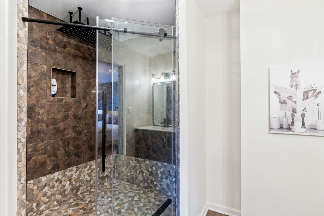 Absolutely enjoyed our stay in this oasis of fun! Our boys loved the shared outdoor space. The sauna and hot tub hit the spot after a long day of driving. We did not venture out but had dinner delivered through door dash. Derby room is spacious with adorable horse design elements. Master bath has a rain shower! This place has everything you need for your stay. Host even had s’mores for the outdoor fire pit! 5 STARS!