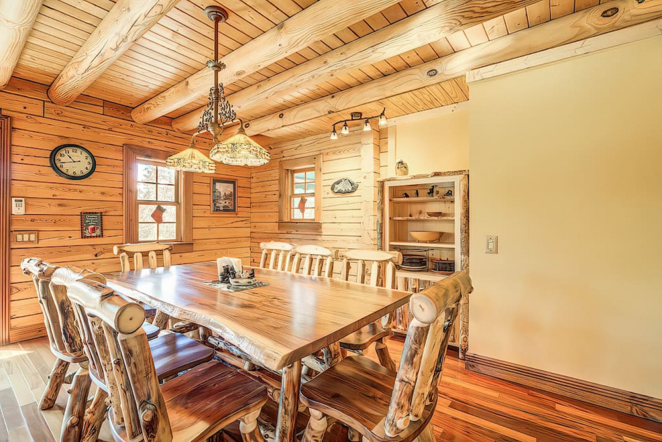/ nightNestled on a 5 acre plot you'll find this 3 bedroom 2.5 bath stunning log home featuring over 2800sqft of true craftsman inspired architecture. You want a memorable vacation, why not stay in an unforgettable home while doing so?! The kitchen of every chef's dream comes fully stocked with basic cookware. The wrap around deck with a luxurious 6 person hot tub and stainless grill can be an easy setting for entertainment or relaxing under the patio lights. This will be one to remember! *There is a refundable $500 damage security deposit that is charged to card on file 5 days before checkout and return the second day after checkout.