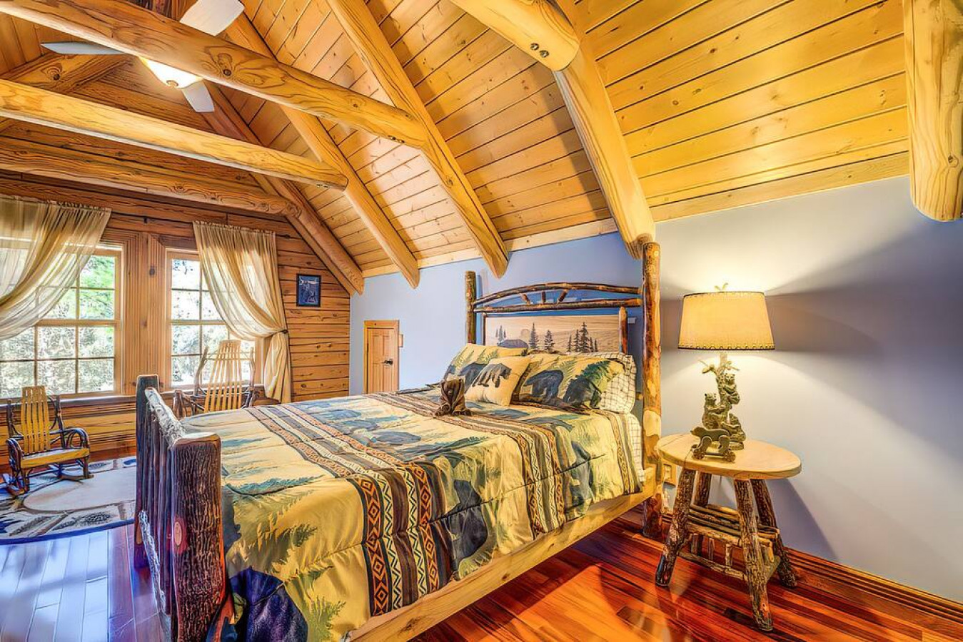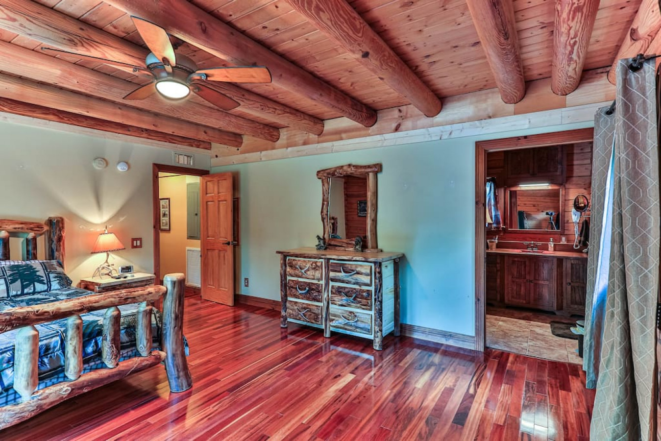 May 2024 5.00Place was in a great location near the springs, cabin was filled with beautiful wood furniture, very spacious, and the jacuzzi was great.
