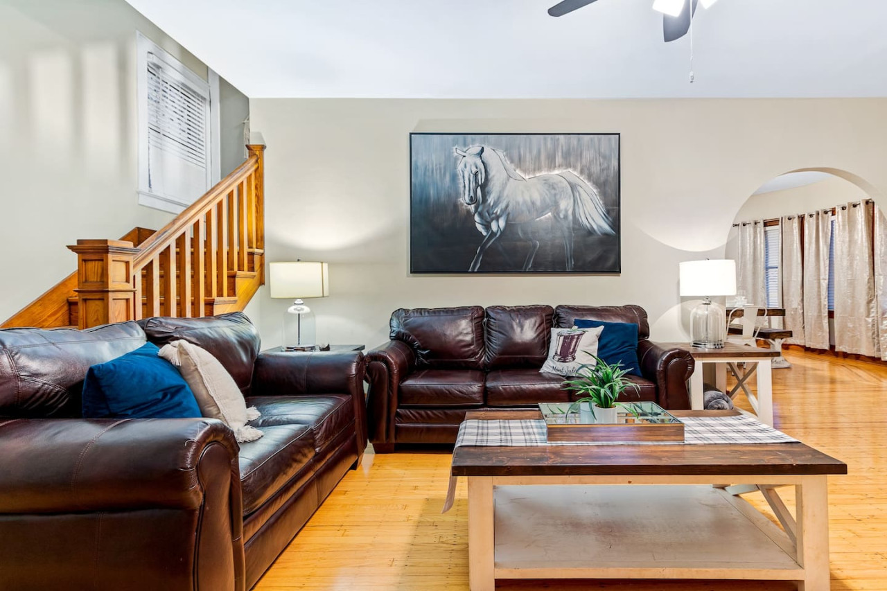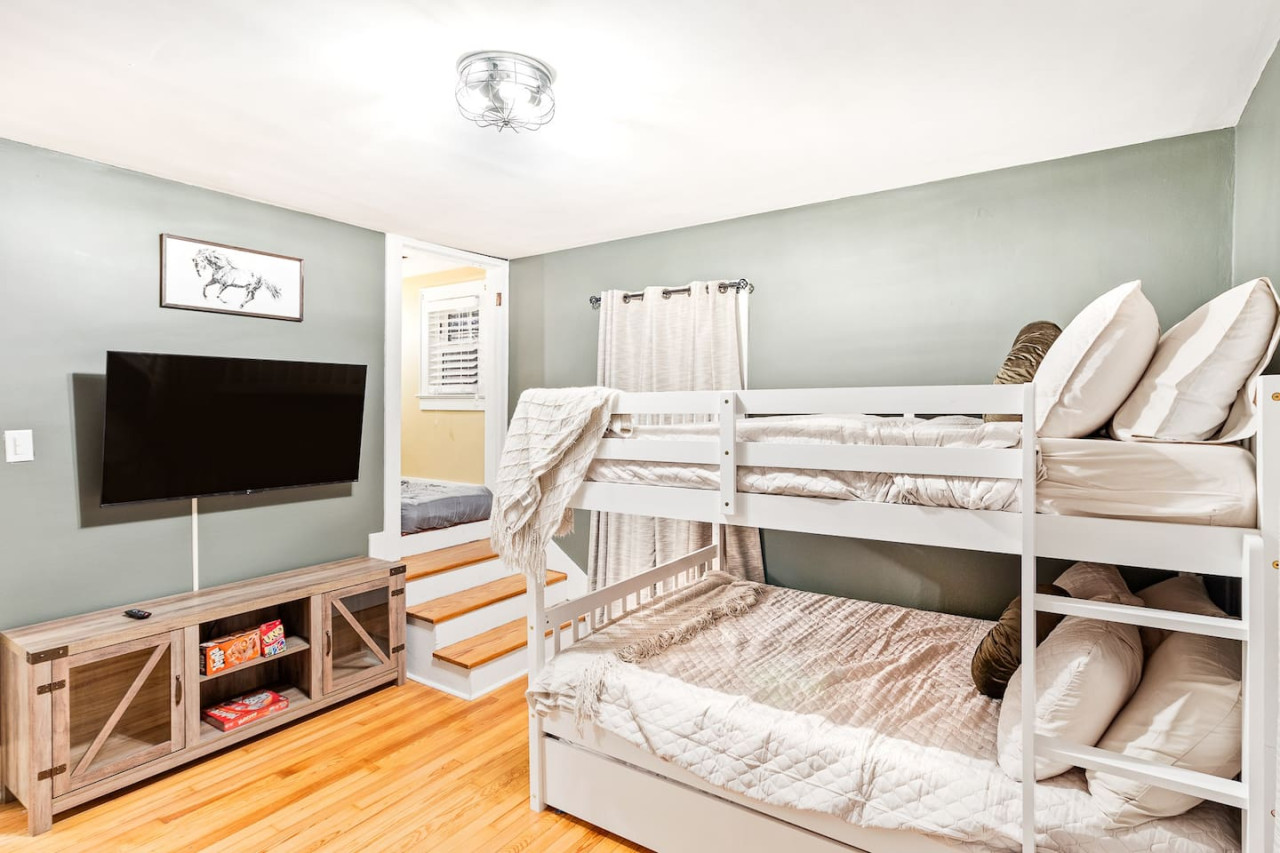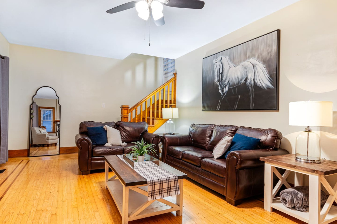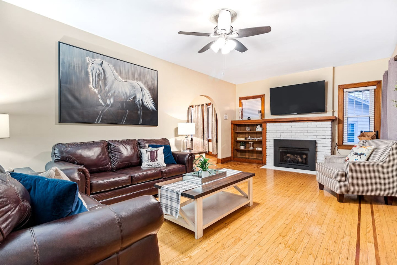 / night🚨3/4/25 Pool is open year round and can get as hot as a hot tub! This historical beauty has many stories to tell but even more memories for guests to make. Less than 8 minutes away from downtown Louisville. The 3 bedroom 2 bath layout works is ideal for a traveling families or mid-size groups. The heated pool and fire table in the backyard provides endless entertain. Please note the pool heat is a $60/day charge and requires a weeks notice to schedule *There is a refundable $500 damage security deposit that is charged to card on file 5 days before checkout and return the second day after checkout. Host lives nearby locally and is available when needed. 4 mins to Big Four Walking Bridge 6 mins to Omni Hotel 8 mins to 4th St 12 mins to Churchill Downs 12 mins to Airport 13 min to Expo Center Jeffersonville sits on the banks of the Ohio River directly across from Louisville where you can enjoy gorgeous views and riverside experiences including dining, shopping, walking, or biking. The house is located just blocks away from downtown Jeffersonville and offers 2-3 off street parking spots and several on street parking availability on an extra wide street.